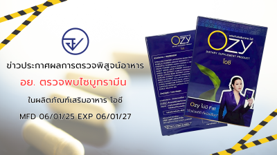 ข่าวประกาศผลการตรวจพิสูจน์อาหาร อย. ตรวจพบไซบูทรามีน ในผลิตภัณฑ์เสริมอาหาร โอซี MFD 06/01/25 EXP 06/01/27