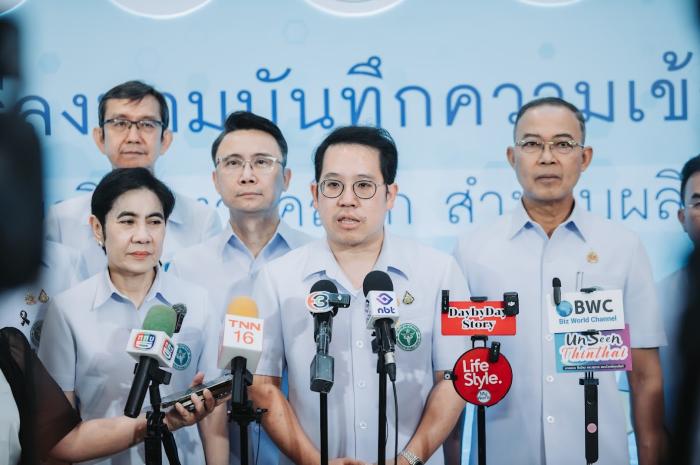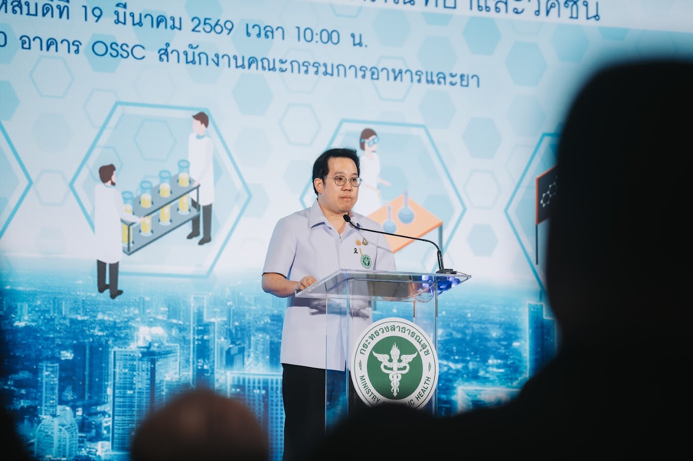 วันนี้ (19 มีนาคม 2569) ณ สำนักงานคณะกรรมการอาหารและยา (อย.) นายพัฒนา พร้อมพัฒน์ รัฐมนตรีว่าการกระทรวงสาธารณสุข เป็นประธานในพิธีลงนามบันทึกความเข้าใจ เรื่อง การส่งเสริมการศึกษาวิจัยทางคลินิกสำหรับผลิตภัณฑ์ยาและวัคซีน พร้อมผู้บริหารกระทรวงสาธารณสุขร่วมเป็นสักขีพยาน โดยมีภาคีเครือข่ายด้านการวิจัยและอุตสาหกรรมยา 6 หน่วยงาน เข้าร่วมลงนาม ได้แก่ สำนักงานคณะกรรมการอาหารและยา มูลนิธิส่งเสริมการศึกษาวิจัยในคนในประเทศไทย สถาบันวิจัยระบบสาธารณสุข สถาบันวัคซีนแห่งชาติ สมาคมผู้วิจัยและผลิตเภสัชภัณฑ์ และสมาคมไทยอุตสาหกรรมผลิตยาแผนปัจจุบัน