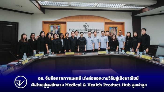 อย. จับมือ กรมการแพทย์ เร่งผลักดันงานวิจัยและนวัตกรรมด้านสุขภาพและการแพทย์ ให้สามารถขึ้นทะเบียนและต่อยอดสู่การใช้ประโยชน์จริงเชิงพาณิชย์ ตั้งเป้ายกระดับไทยสู่ศูนย์กลางการแพทย์และผลิตภัณฑ์สุขภาพมูลค่าสูง อาทิ ยาบำบัดรักษาขั้นสูง (ATMPs) ปัญญาประดิษฐ์ทางการแพทย์ (AI) และเวชสำอาง (Cosmeceutical)