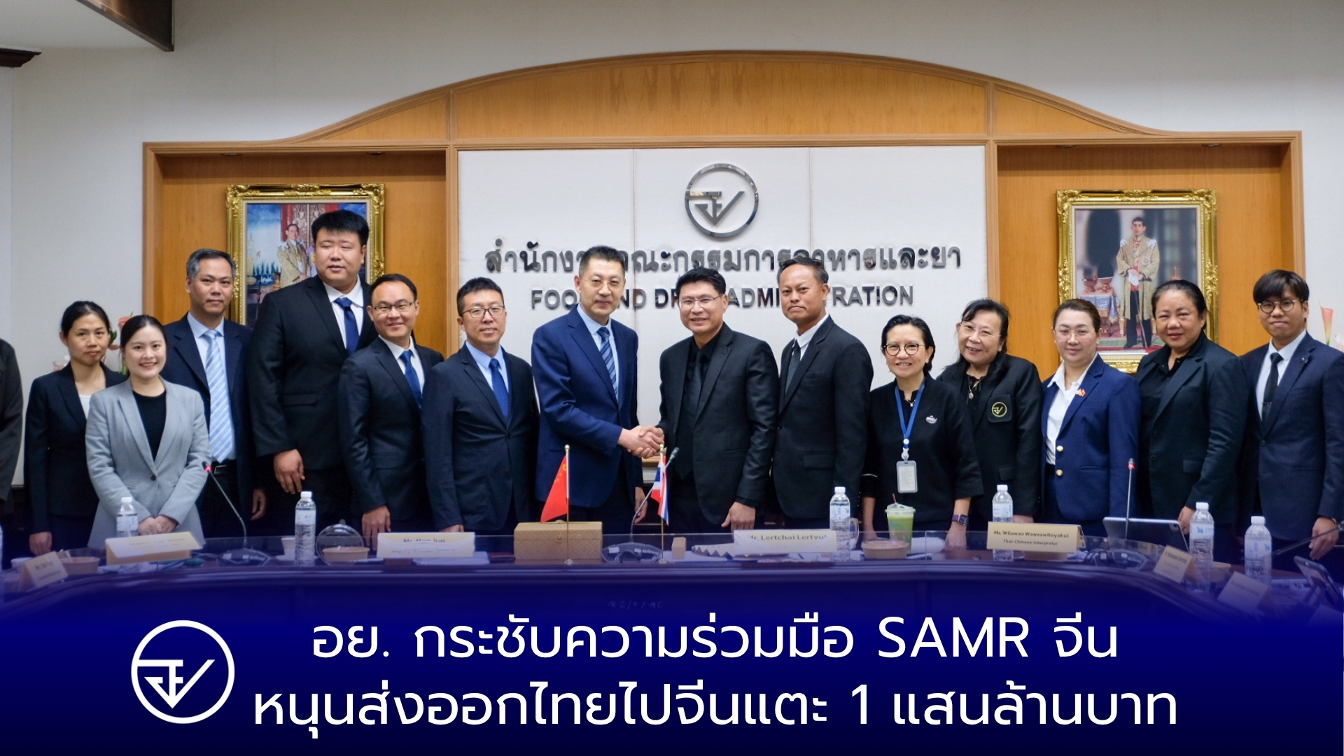 อย. สร้างความร่วมมือเชิงยุทธศาสตร์กับ SAMR จีน เปิดประตูการค้าอาหารไทยสู่ตลาดจีนอย่างมั่นใจ พัฒนาแนวทางตรวจสอบอาหารนำเข้า–ส่งออกให้ได้มาตรฐาน โปร่งใส และตรวจสอบย้อนกลับได้ เสริมศักยภาพอุตสาหกรรมการส่งออกอาหารไทยไปประเทศจีน มูลค่ากว่า 100,000 ล้านบาท ต่อปี