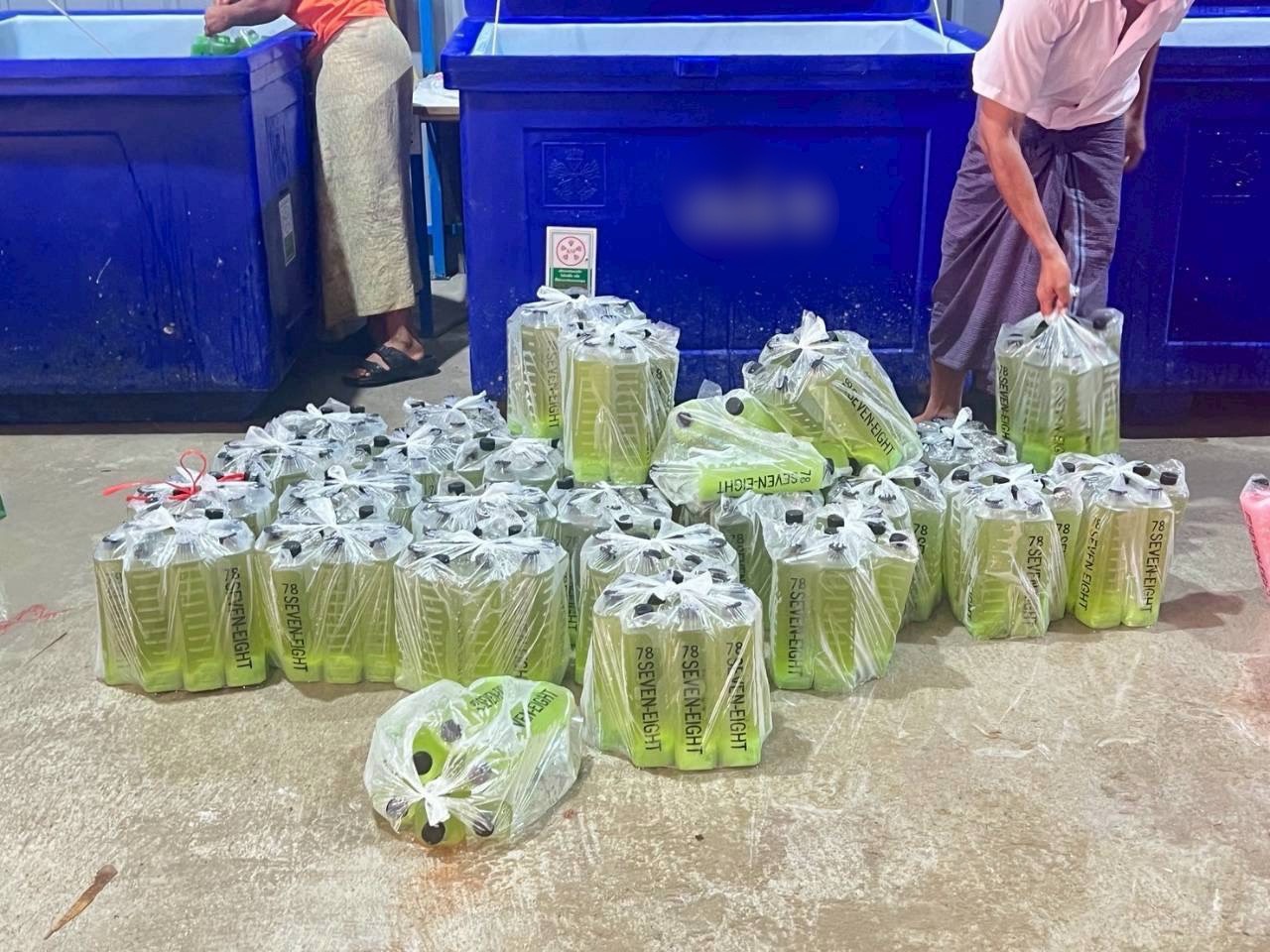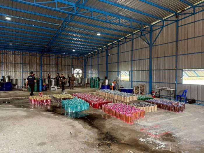 2. สถานที่ผลิต ผลิตภัณฑ์เครื่องดื่มสำเร็จรูป ยี่ห้อ 78 (Seven-eight) โดยเจ้าหน้าที่ตำรวจ กก.4 บก.ปคบ. ได้ร่วมกับเจ้าหน้าที่สำนักงานคณะกรรมการอาหารและยา นำหมายค้นของศาลจังหวัดพระประแดง เข้าตรวจค้นสถานที่ผลิต ภายโกดังแห่งหนึ่ง ในพื้นที่ ต.ในคลองบางปลากด อ.พระสมุทรเจดีย์ จ. สมุทรปราการ พบ Miss เทียน (สงวนสนามสกุล) สัญชาติเมียนมา อายุ 19 ปี เป็นผู้นำตรวจค้น โดยขณะตรวจค้นพบว่า ภายในโกดังดังกล่าวมีการผลิต โดยต้มใบกระท่อมต้มในหม้อ จากนั้นนำมาผสมน้ำเชื่อมรสชาติต่าง ๆ และใช้แรงงานประเทศเพื่อนบ้านนั่งกรอกลงขวดบรรจุภัณฑ์โดยไม่สวมถุงมือแต่อย่างใด โดยสถานที่ผลิตไม่ได้รับอนุญาต และไม่ถูกสุขลักษณะ โดยได้ตรวจยึดผลิตภัณฑ์เครื่องดื่มสำเร็จรูป วัตถุดิบ อุปกรณ์ในการผลิต ดังนี้