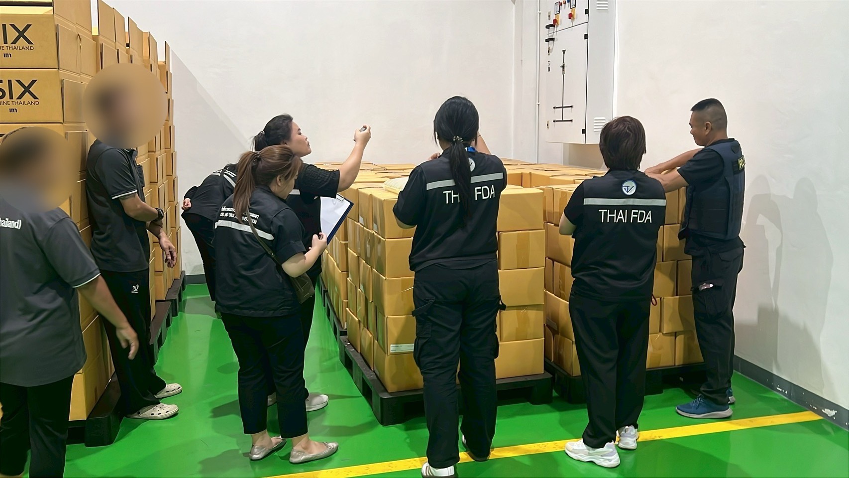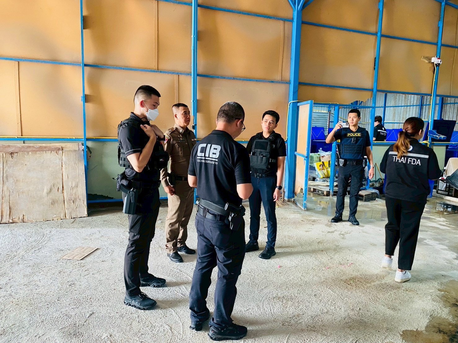 เจ้าหน้าที่ตำรวจชุดตรวจยึด นำโดย พ.ต.ท.ธันว์ธวัช อนุรักษนิยม พร้อมเจ้าหน้าที่ตำรวจ กก.4 บก.ปคบ. พร้อมเจ้าหน้าที่สำนักงานคณะกรรมการอาหารและยา และเจ้าหน้าที่สำนักงานสาธารณสุขจังหวัดสมุทรปราการ