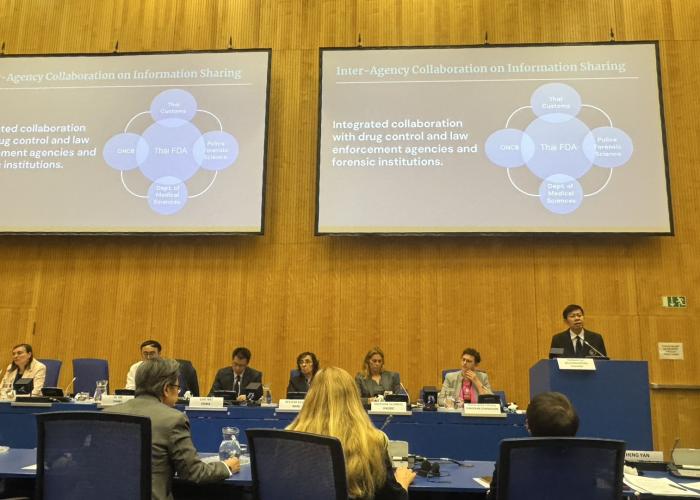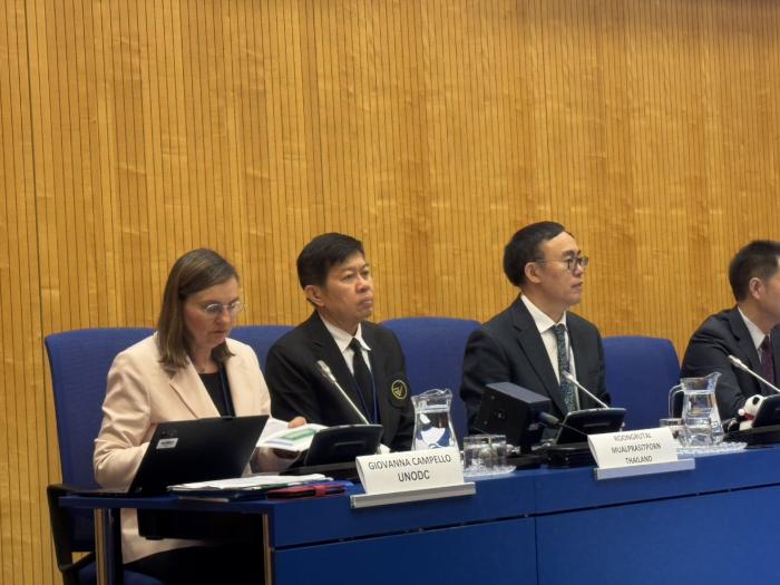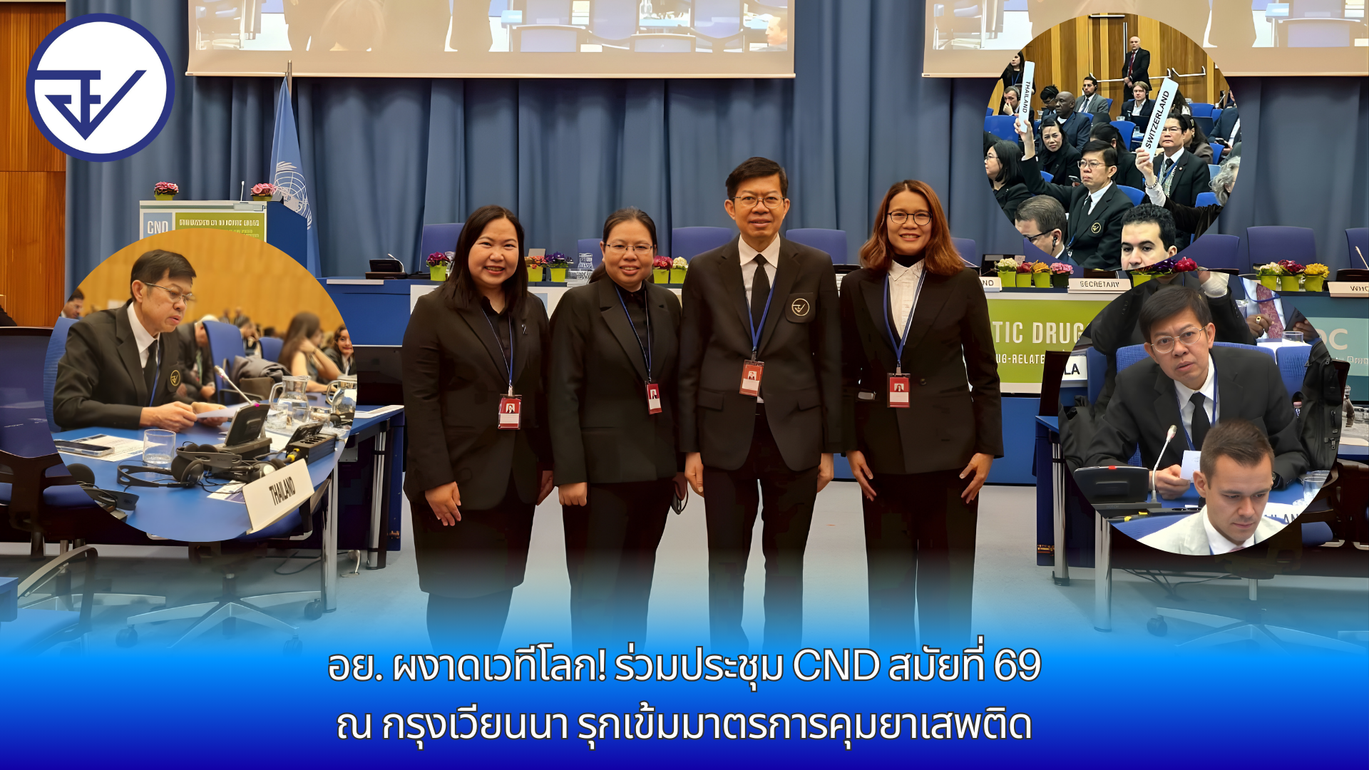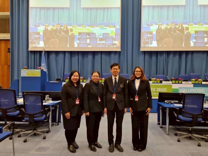 นายแพทย์รุ่งฤทัย มวลประสิทธิ์พร รองเลขาธิการคณะกรรมการอาหารและยา พร้อมผู้แทนจากกองควบคุมวัตถุเสพติด สำนักงานคณะกรรมการอาหารและยา (อย.) เข้าร่วมการประชุมคณะกรรมาธิการยาเสพติดแห่งสหประชาชาติ (Commission on Narcotic Drugs: CND) สมัยที่ 69 ระหว่างวันที่ 9–13 มีนาคม 2569 ณ กรุงเวียนนา สาธารณรัฐออสเตรีย เพื่อร่วมกำหนดนโยบาย มาตรการควบคุม และแนวทางแก้ไขปัญหายาเสพติดในระดับนานาชาติ การประชุมครั้งนี้ มีการพิจารณาและลงมติการเปลี่ยนแปลงขอบเขตการควบคุมสารเสพติดชนิดใหม่จำนวน 3 รายการ ซึ่งองค์การอนามัยโลก (WHO) เสนอให้ขึ้นบัญชีควบคุม โดย อย. เป็นผู้แทนประเทศไทยกล่าวถ้อยแถลงในวาระความร่วมมือระหว่างประเทศ เพื่อส่งเสริมการเข้าถึงยาเสพติดทางการแพทย์และวิทยาศาสตร์ ควบคู่กับมาตรการป้องกันการรั่วไหลไปใช้ในทางที่ผิด